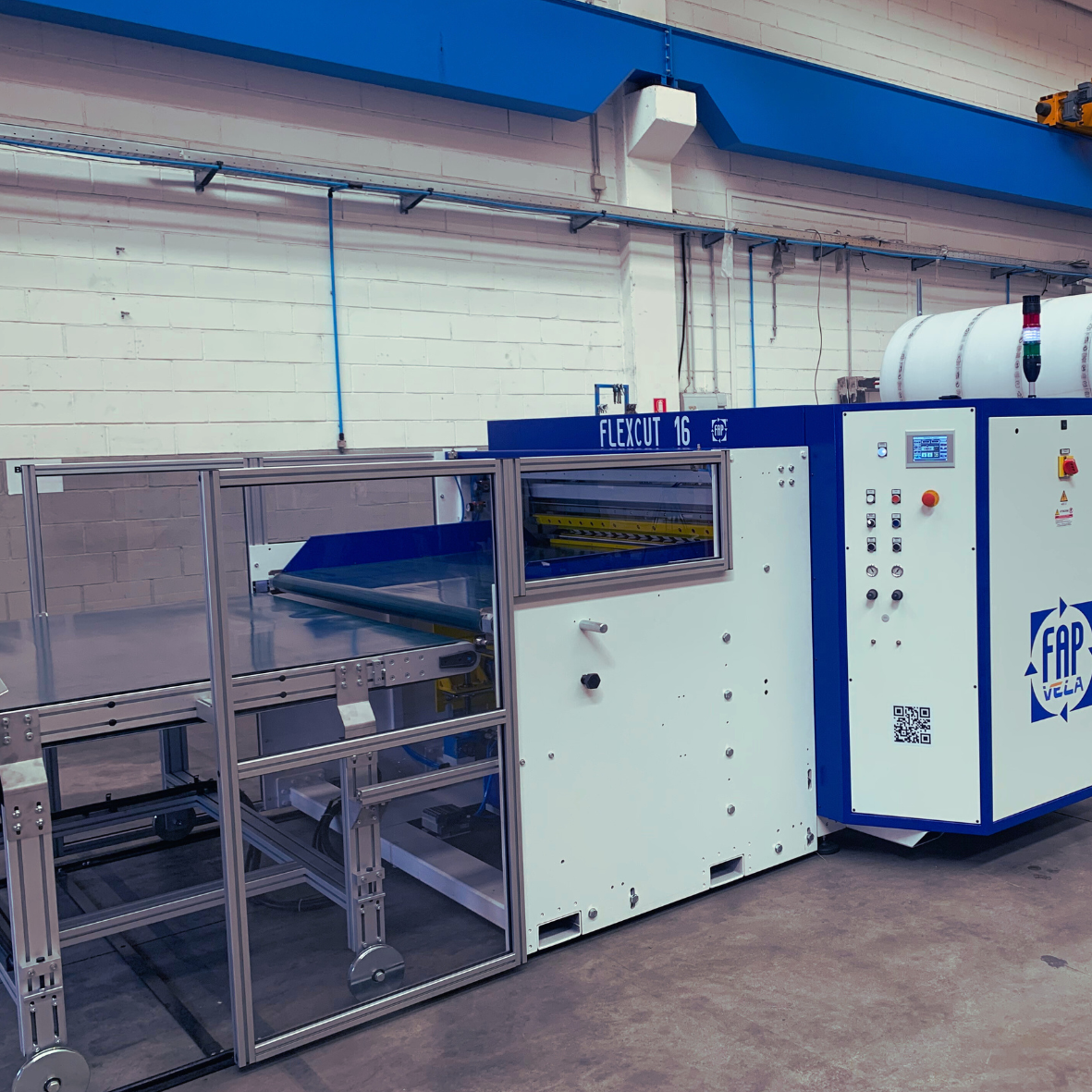 The cutting machine Flexcut or Flexcut Special can be fully customized to integrate seamlessly into the specific production process where it will be installed.